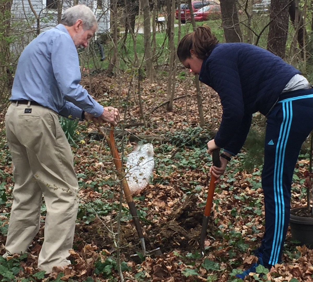 April 10, 2017 IMG_5121 Published at 2659 × 2394 in Right in my own backyard. Sam convinced dad-dad to help plant a tree.