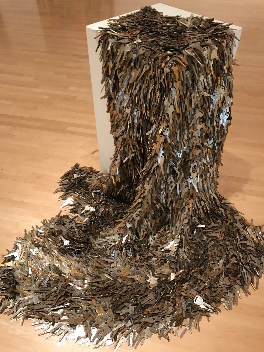 July 7, 2017 IMG_0501 Published at 3024 × 4032 in A ‘peak’ at a perfect day. “Pelt” made from found keys and steel chainmaille, by Kathleen Kennedy.