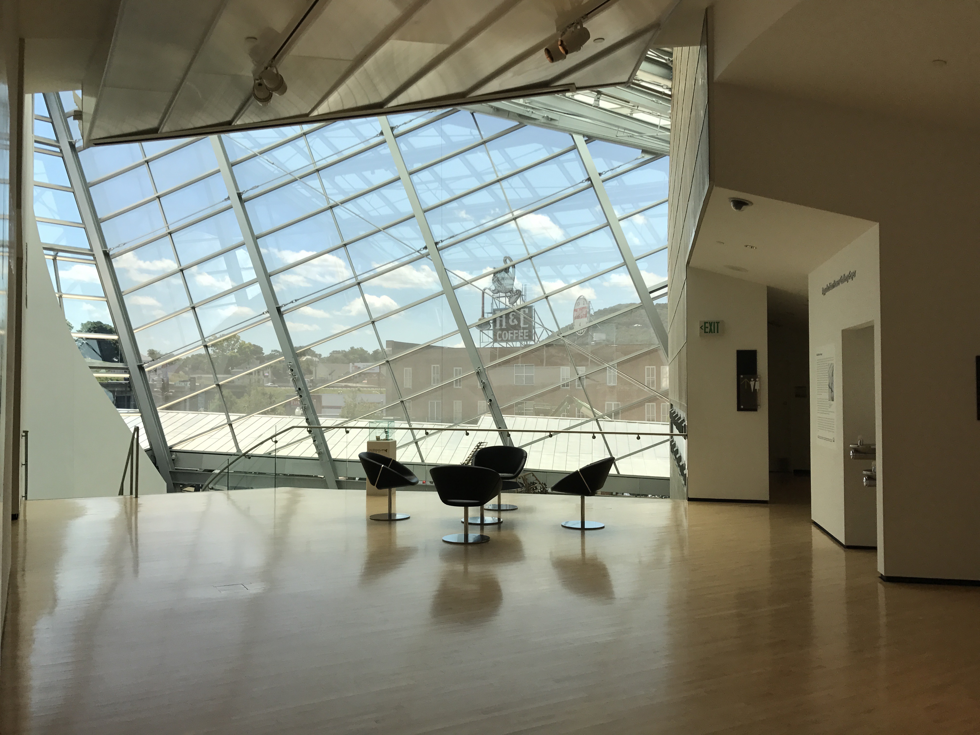 July 7, 2017 IMG_0533 Published at 4032 × 3024 in A ‘peak’ at a perfect day. Taubman Museum of Art, gallery level.