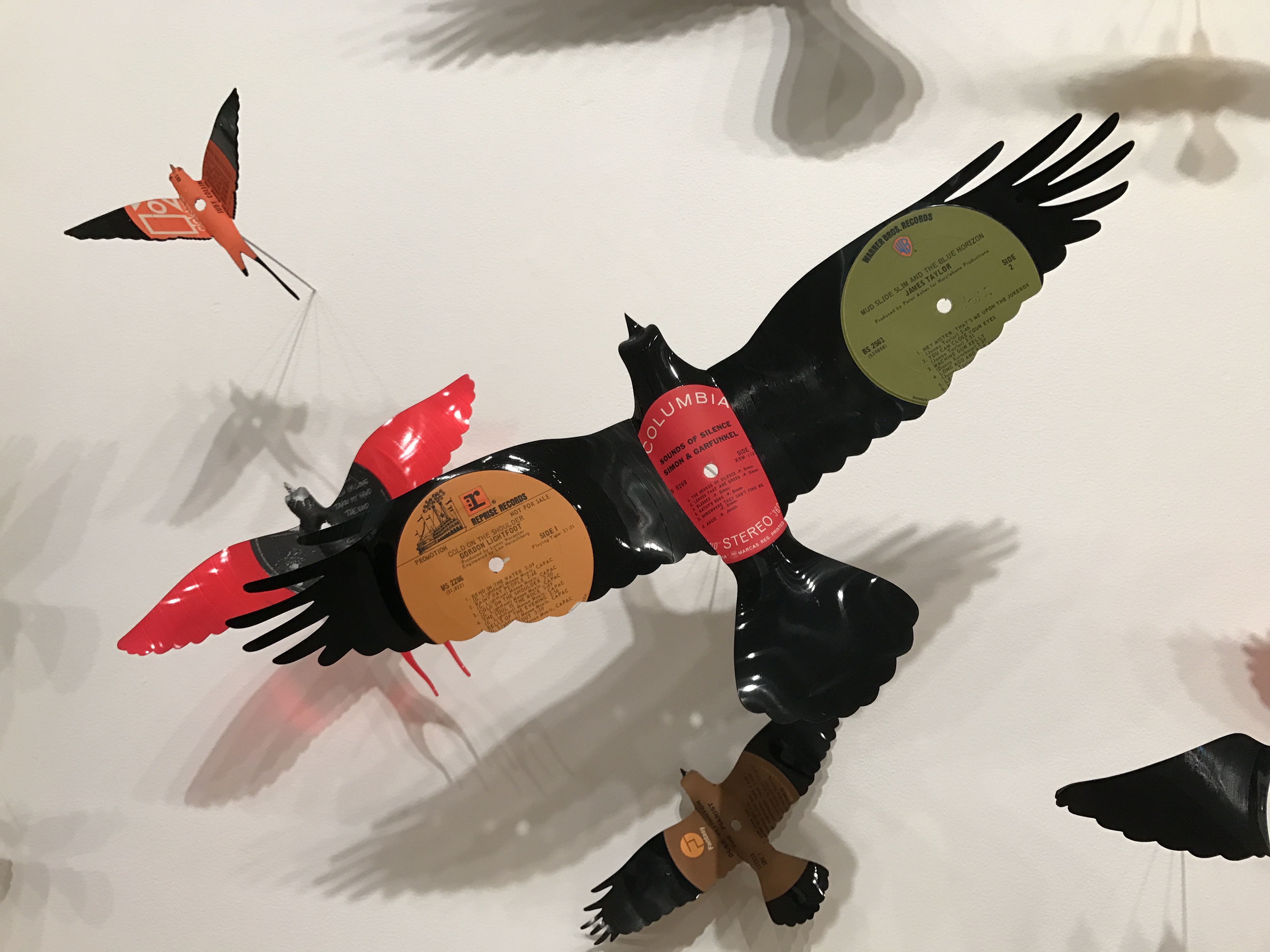 July 7, 2017 IMG_0567 Published at 4032 × 3024 in A ‘peak’ at a perfect day. Birds morph from obsolete LP records, musical notes in flight.