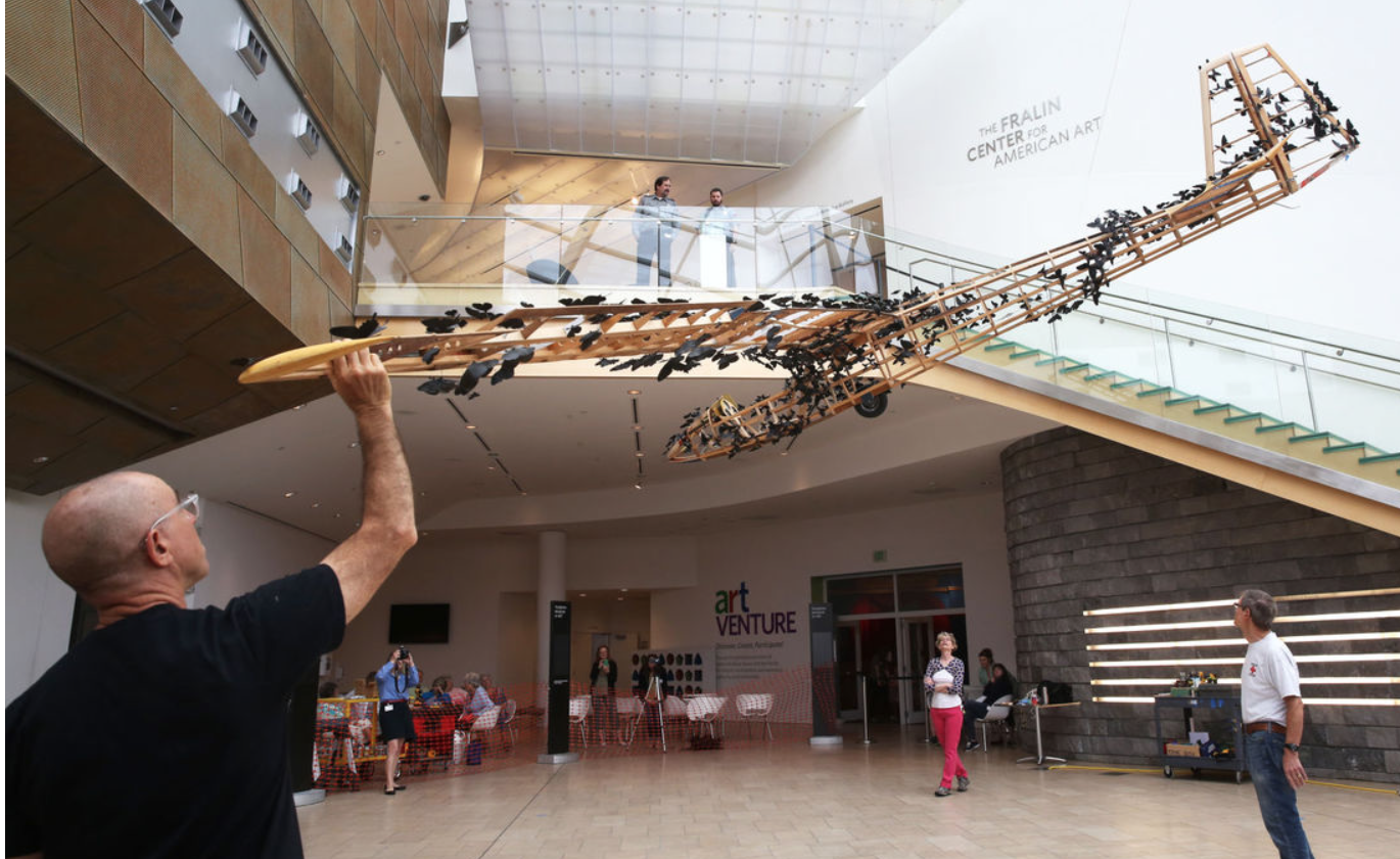 July 10, 2017 Screen Shot 2017-07-10 at 3.29.13 PM Published at 1370 × 840 in A ‘peak’ at a perfect day. Paul Villinski oversees installation of his sculpture, “Passage” in Taubman Museum’s atrium. Photo, Stephanie Klein-Davis, Roanoke Times.