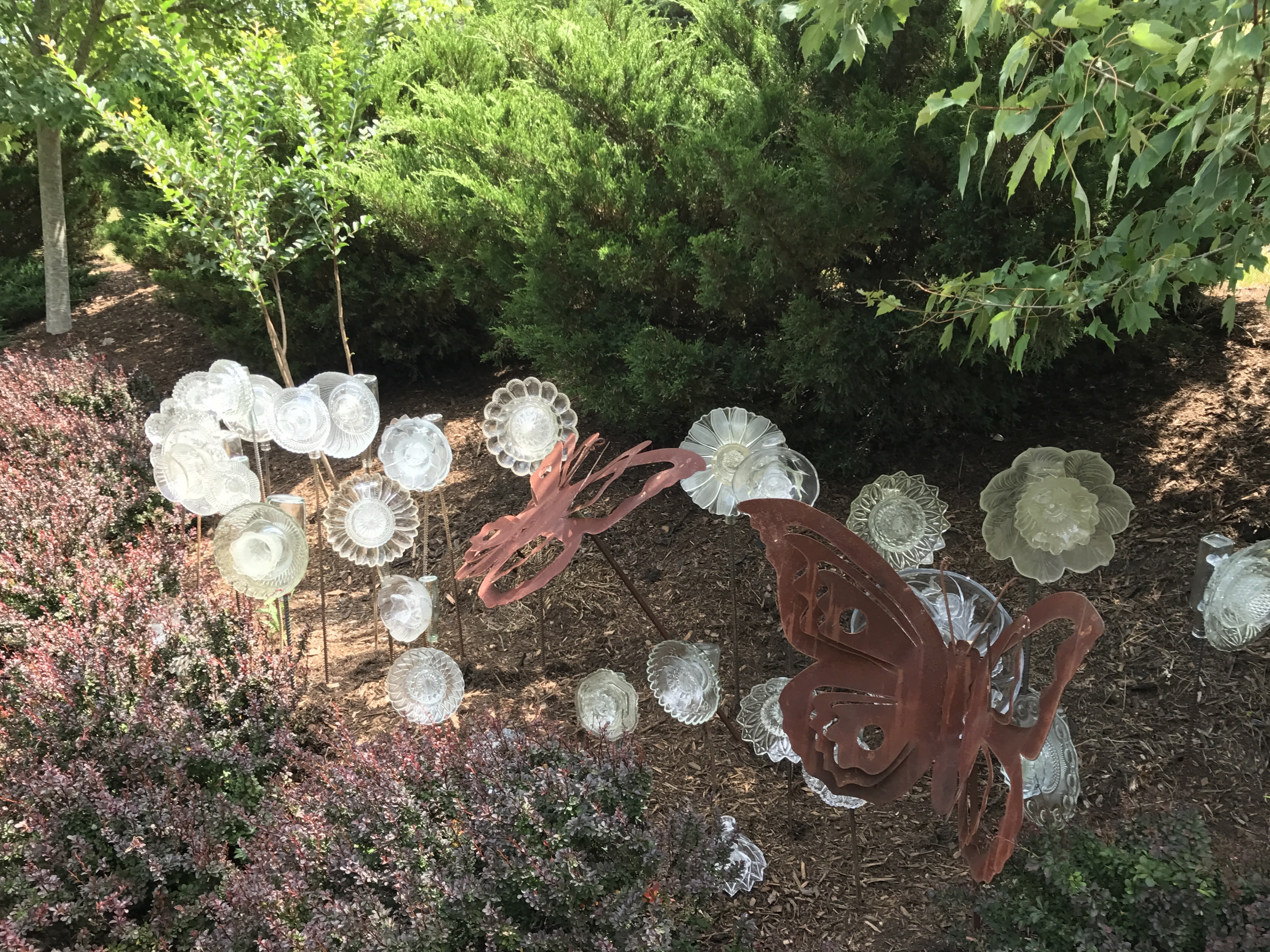 July 28, 2017 IMG_0896 Published at 4032 × 3024 in ‘Gardens and flowers have a way of bringing people together…’ Clear glass flowers nestle against beriberi.