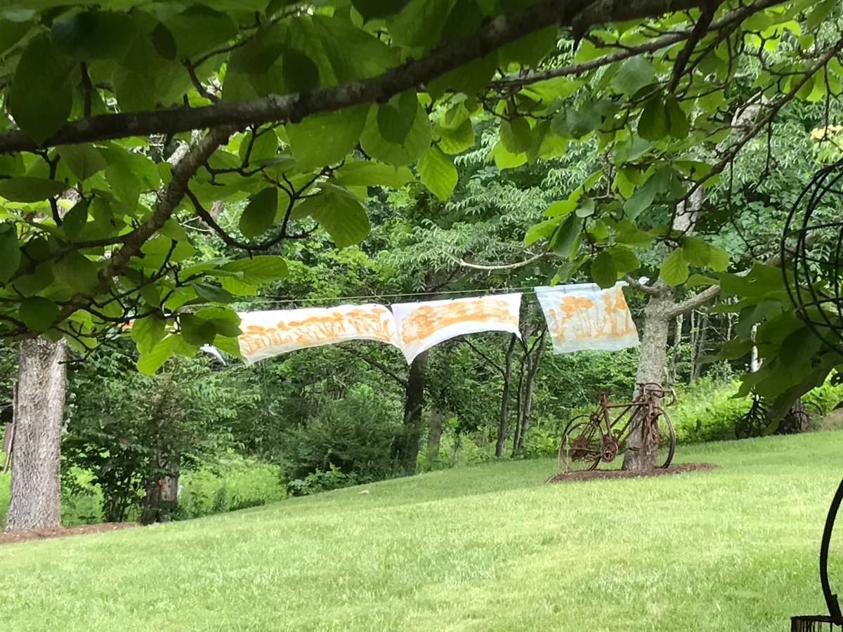 July 26, 2017 Published at 4032 × 3024 in ‘Gardens and flowers have a way of bringing people together…’ Breezes blow fabric art where rust reigns.