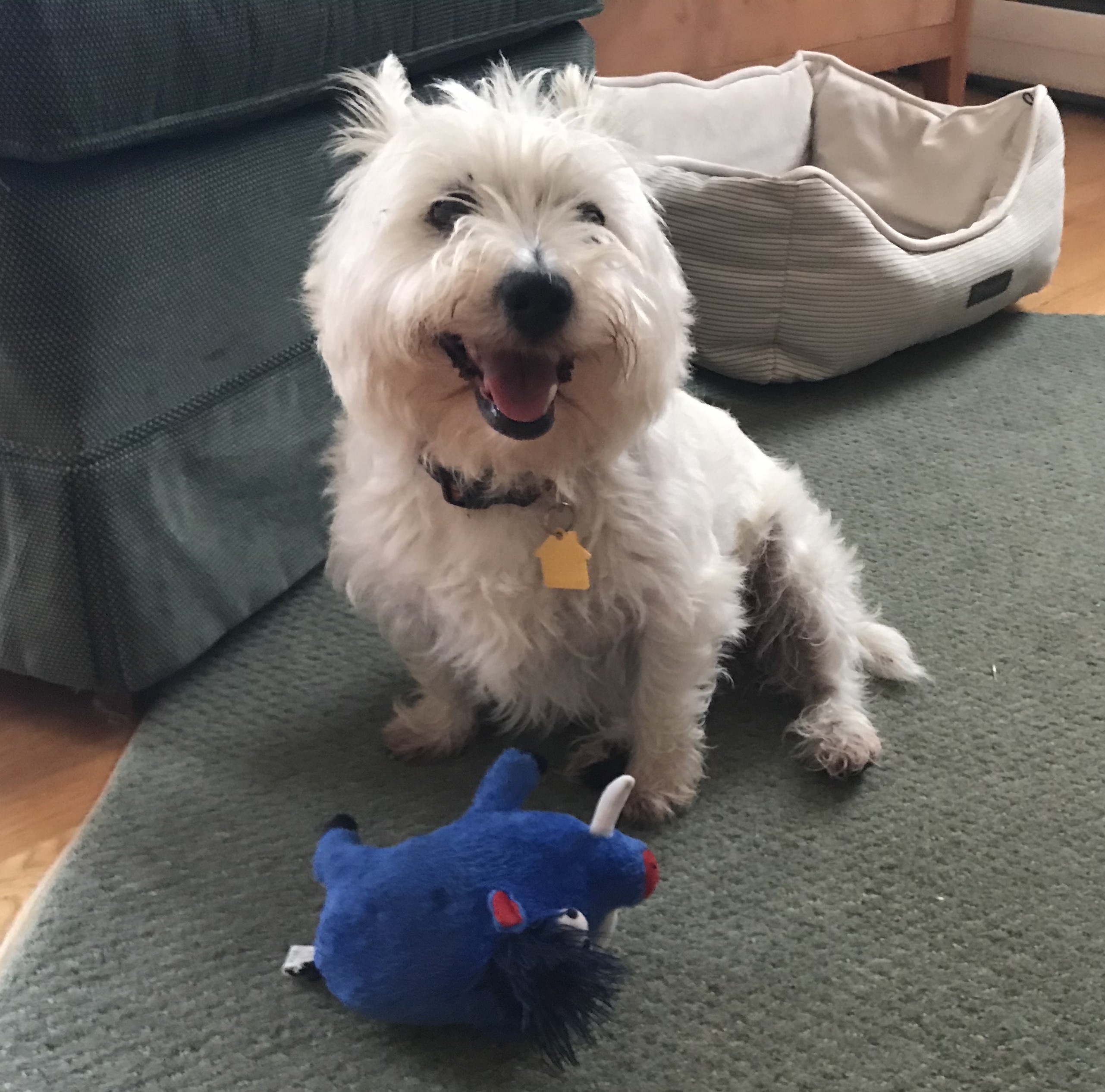 July 25, 2020 IMG_5670 Published at 2562 × 2532 in Tales that wag the dogs. She loves Nobby’s squeaky warthog